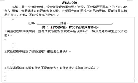 另外,为了进一步完善书面形式的交流与评估,每次实验后我都将及时把学生的填写情况进行整理,并对于一些比较典型的疑问进行解答,从而更好地完成师生间的交流与评估。(见附件)