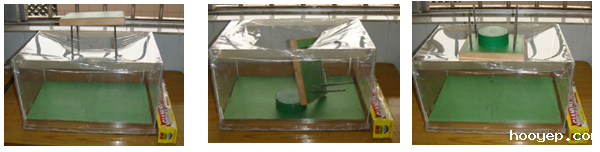 例子1:压力小桌的实验。在九年级物理第十四章《压强》一节中,有一个关于研究压力作用效果与压力大小、受力面积大小关系的实验。这个实验的步骤设计合理,能很好地说明问题。实验是把小桌放在泡沫或细沙中,观察小桌在泡沫或细沙中的下陷情况来判断结果的,但是,小桌在三种情况中都有一定程度的下陷,学生难于远距离观察现象,有鉴于此,我特意把实验的装置加以改良,装置图及各部分的名称如下:
