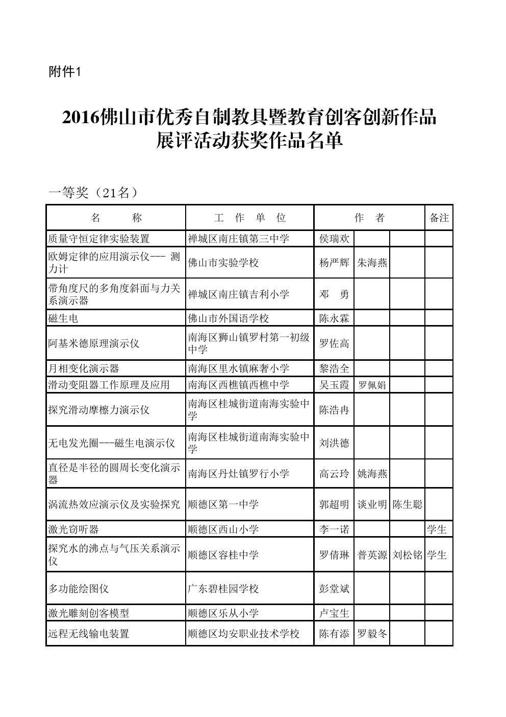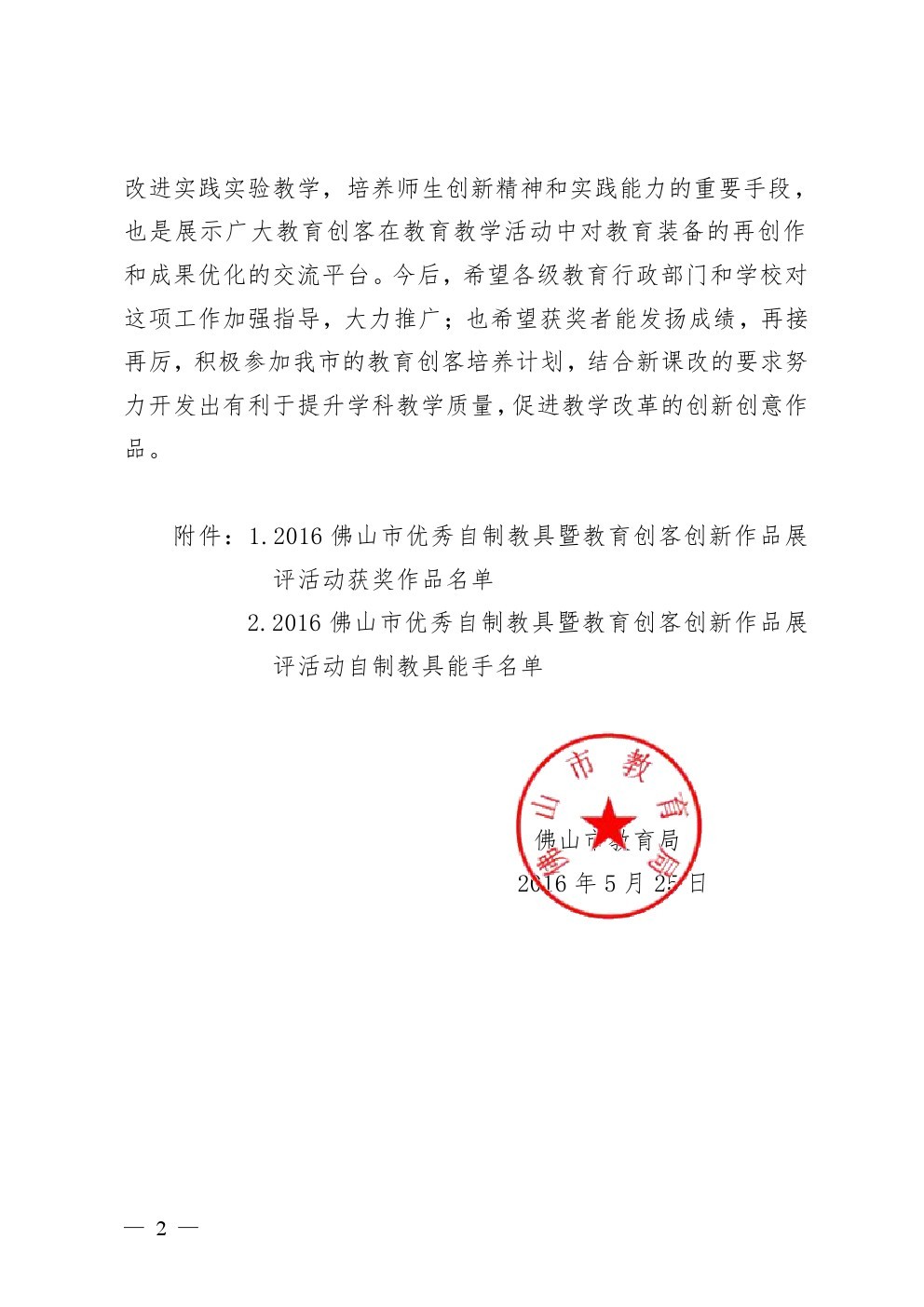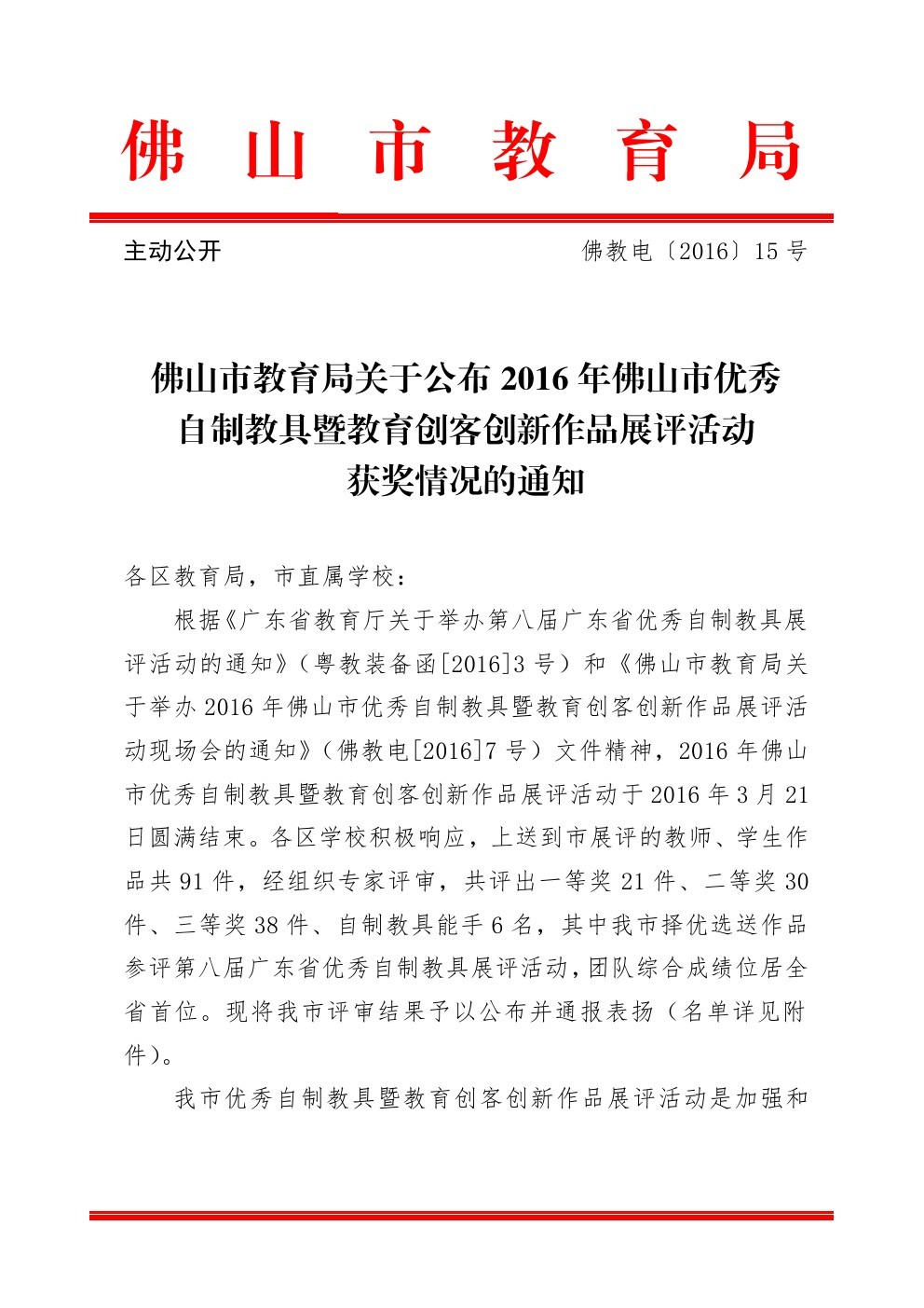 伟德betvlctor的客服平台关于公布2016年佛山市优秀自制教具暨教育创客创新作品展评活动获奖情况的通知