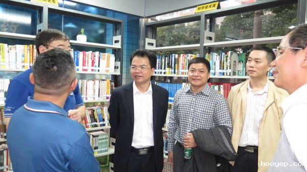 考察团在市教育局局长毛永天、省教育装备中心副主任林柏春陪同下参观全市第一间24小时校园自助图书馆