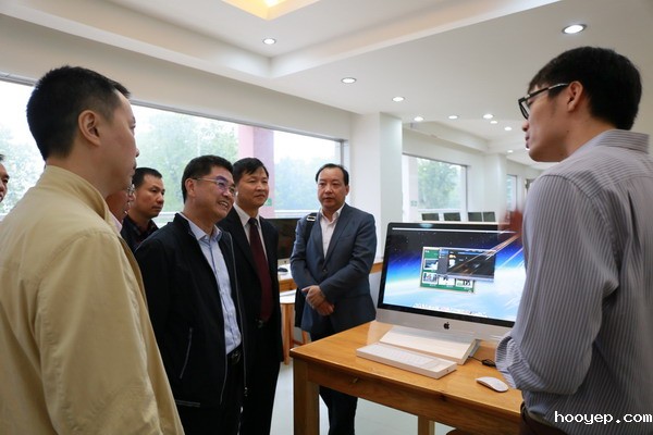 考察团与省教育装备中心主任彭红光一起参观全市首个苹果创意电子阅览室