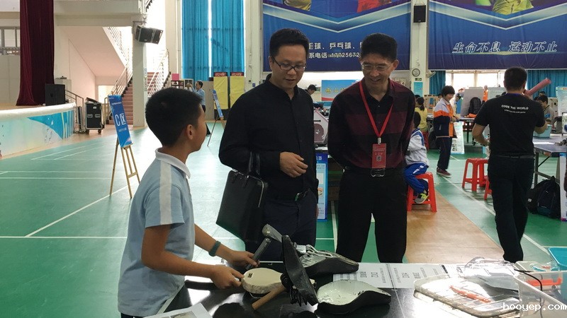 市教育局副局长徐旭雁在顺德区教育局副局长张毅陪同下参观学生创客作品