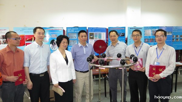省、市有关领导和团队全体成员在我市获奖创新实验作品前合照