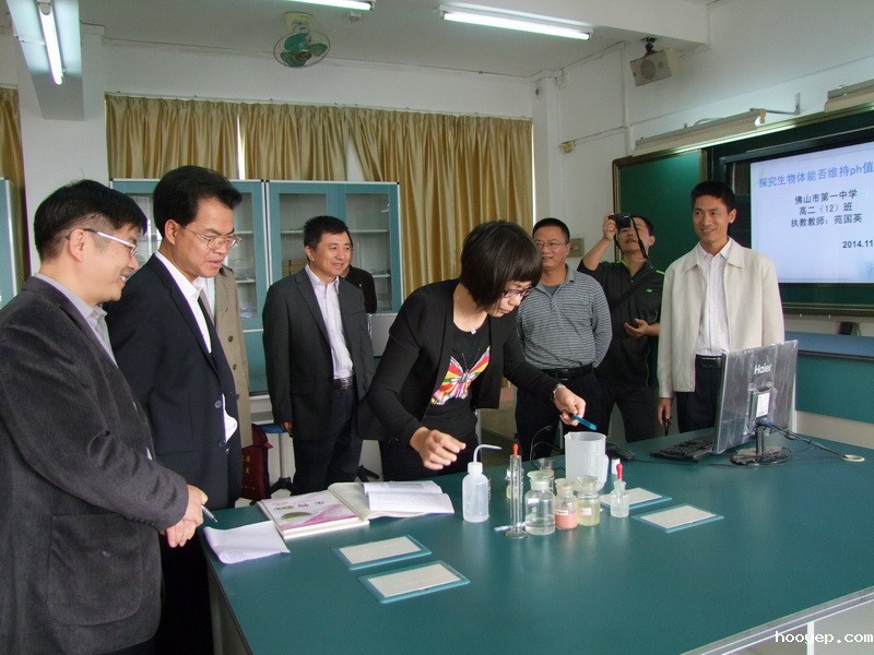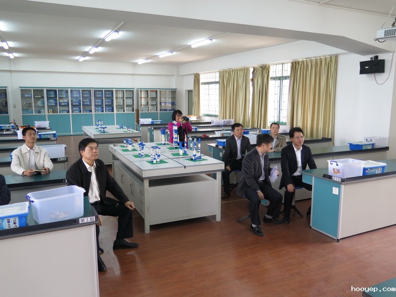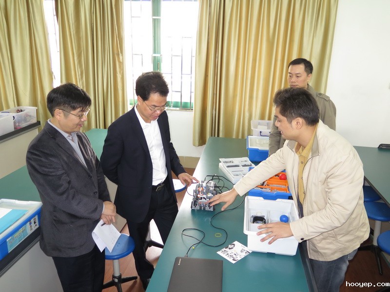 在佛山一中,毛局长一行参观并了解了学校自2011年以来市级财政支持下的教育装备建设与应用成效:所有教室、实验室(含功能场室)均配备了交互式一体化电子白板,建成了理化生数字化探究实验室、数学实验室、数字星球系统地理专用教室、国际化的AP课程探究实验室、JA经济学实验室、教育部-乐高首个授牌的技术教育创新实验室、通用录播教室等一批新技术装备和设施,更新了学校图书馆电子阅览室及语言实验室设备等。在每一处场所,毛局长都详细询问和了解新技术装备的功能实效、教学应用、日常管理情况。在国际化AP课程探究实验室,他还亲身体验了现代传感技术与实验探究装备相结合的生物实验课题探究演示过程。最后听取了谭根林校长所作的基于信息技术和STEM(科学、技术、工程、数学)教育理念融合的教育装备创新发展思路和装备工作汇报。毛局长对佛山一中近年来的装备工作实效表示肯定,并提出了下一步的工作要求:一是要结合既定装备建设目标,管好、用好并维护好现有的教育装备,充分发挥设备设施投入与产出的效益和效能;二是结合学校的发展规划和实际需要,制定下一阶段的装备建设计划,装备采购和管理过程要严格依法依规进行,确保装备工作有序,操作管理规范;三是要围绕教育综合改革大局要求,加强新装备新产品的创新应用,激发学生的学习探究和创新潜能,切实提高教育装备的应用水平,为全市树立教育装备促进教育改革的榜样和典范。