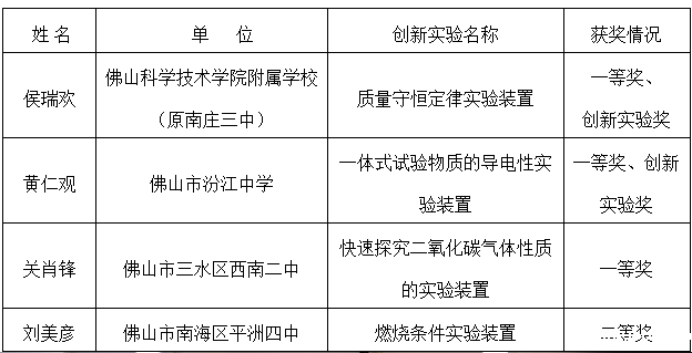 广东省教育厅主办的2014年广东省初中化学实验教师(实验管理员)实验操作与创新技能展演活动成绩日前公布。在市、区教育装备部门(电教站)和市教育局教研室的共同努力下,我市择优选派的4名参赛选手取得了3个省一等奖、1个省二等奖,2个省创新实验奖,其中一等奖、创新实验奖及团队综合成绩均位居全省冠军,充分体现了各部门团队团结协作的智慧成果。