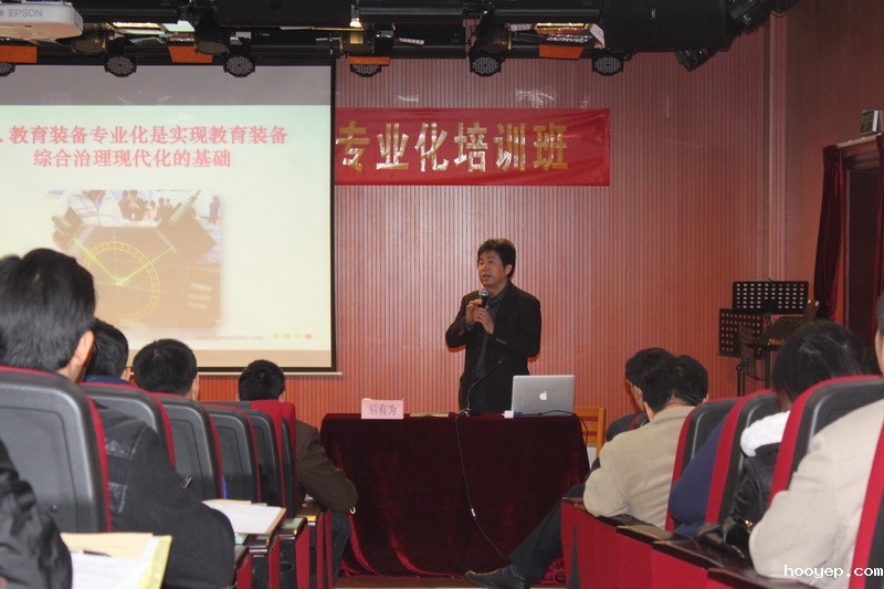 教育部基础教育实验室建设与实验教学研究中心主任、南京教育装备与勤工俭学办书记、主任后有为作教育装备治理现代化方面的主题报告