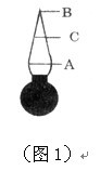 实验1:如水和酒精混合时的体积变化实验。取一干燥带大胶头(如图1)的胶头滴管,倒置,从导管口向滴管中加入显红色的水,水面约占总体积的一半(A处),再从导管口 向滴管中加入无色的酒精,加满滴管(B处)。用拇指按住管口, (图1)上下颠倒滴管两三次,红色的水和无色酒精混合,有少量气泡产生,橡胶头稍稍变“瘪”。松开拇指,液面下降2cm—3cm(C处)。此实验仪器易得,操作简便,用料很少,现象明显。
