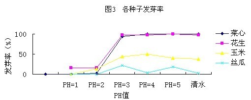 表2 模拟酸雨对花生、丝瓜、玉米、菜芯种子萌发的影响