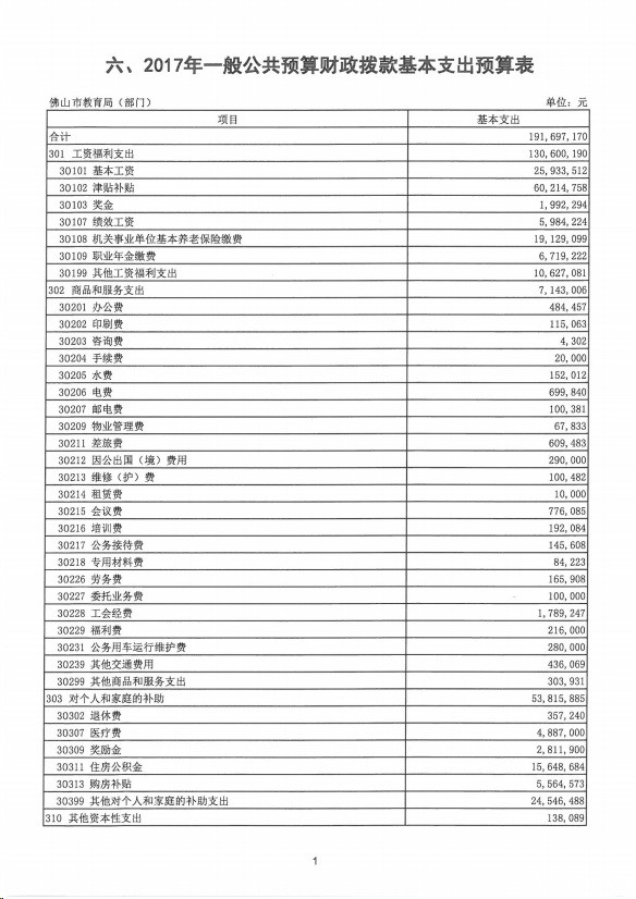 2017 年一般公共预算安排基本支出19,170 万元(详见表六),其中:机关运行经费306万元。
